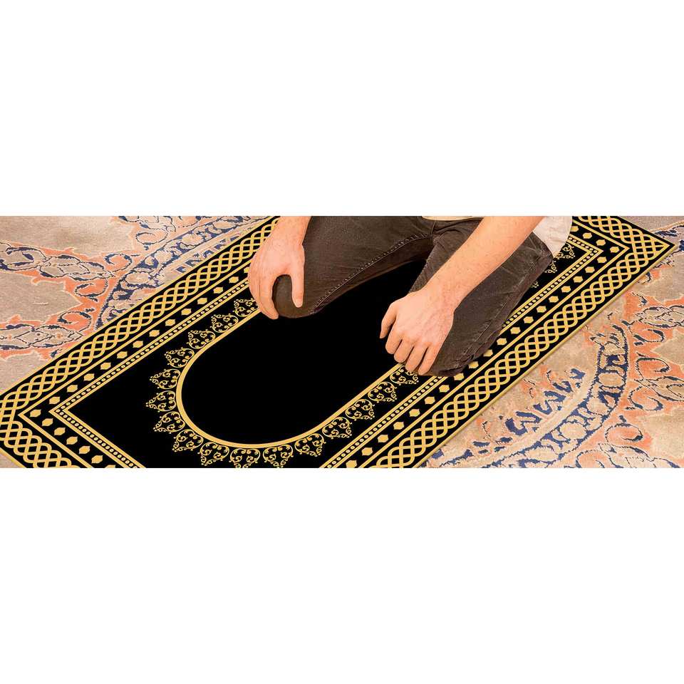 Gold & Black Prayer Rug: Islamic Worship Mat, Elegant Design,Nonwoven Thin Rug