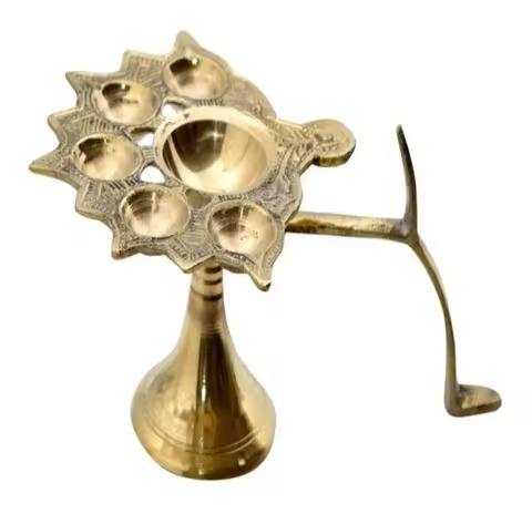 Gold Brass Oil Diya for Diwali Celebration Indian Temple Pooja Home Decoration Traditional Festival Lamp