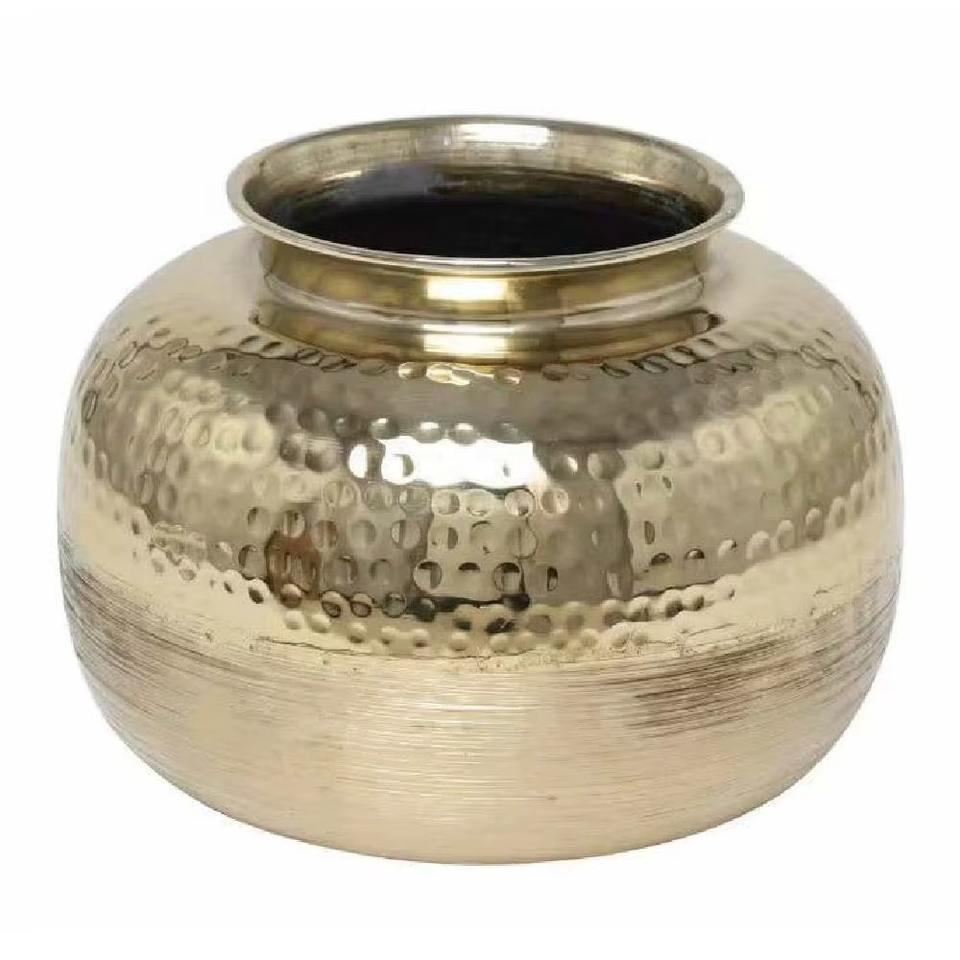 Gold Brushed Aluminum Decorative Vase with Hammered Top Modern Metal Table Vase Perfect for Tabletop Flower Arrangements & Home