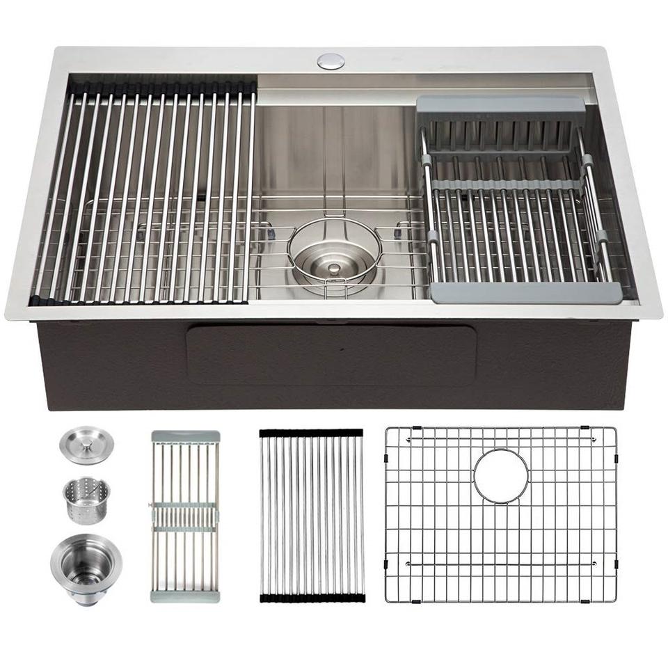 Gold Brushed Kitchen Sink Single Bowl Stainless Steel Above Counter Sink Drain Catcher Kitchen Bowl Set Steel Sink Basket