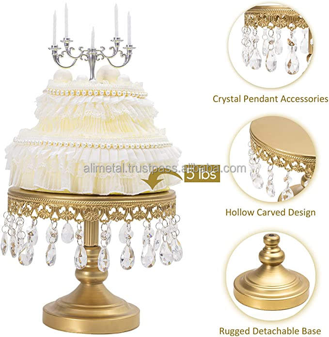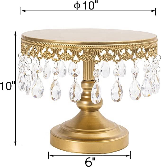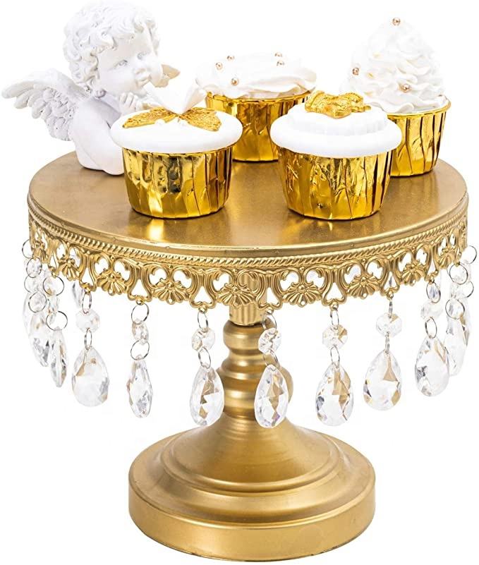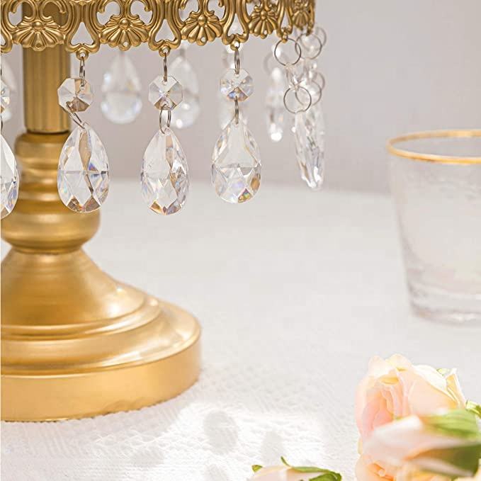 Gold Cake Stand Round with Pendants and Beads Cupcake Metal Display for Dessert Table Christmas New Year Wedding Event