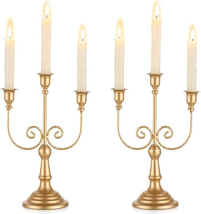 Gold Candle Holders Vintage European Metal Candelabra 3 or 5 Arms Classic Bronze Candle Holder Table Centerpiece Home Decor