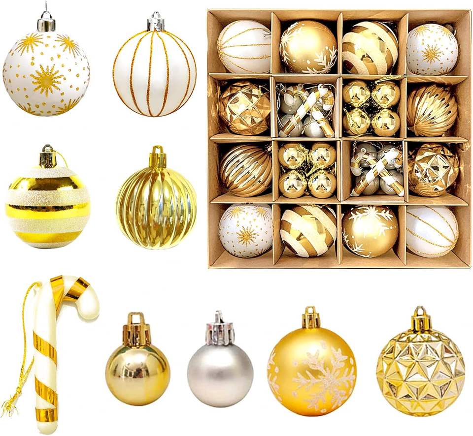 Gold Christmas Ball Ornaments for Christmas Tree Baubles Ornaments Xmas Hanging Balls Decorations Festival (2.36"/60mm)