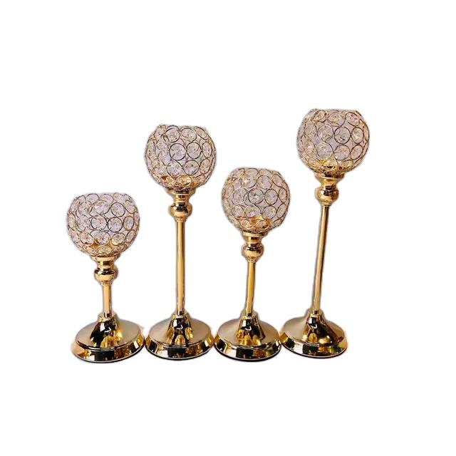 Gold Color Crystal Candle Holder Home Decor centrepiece Shiny customized Candle Stand Indoor And Outdoor Candle Votive