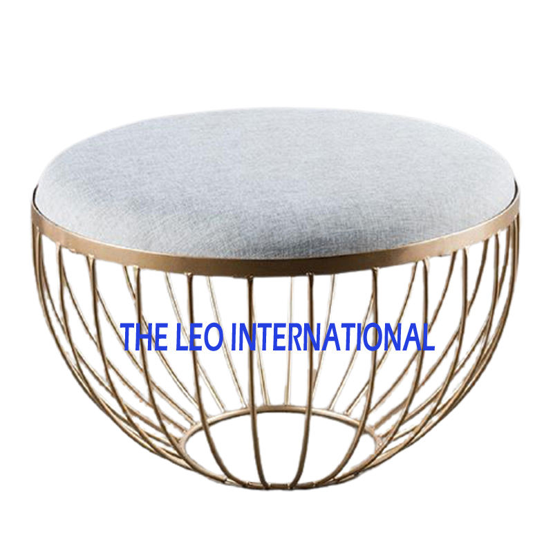 Gold Color Steel Metal Frame Puffy Cushion Top Ottoman Stool Coffee Table Comfortable Furniture Villa Decoration
