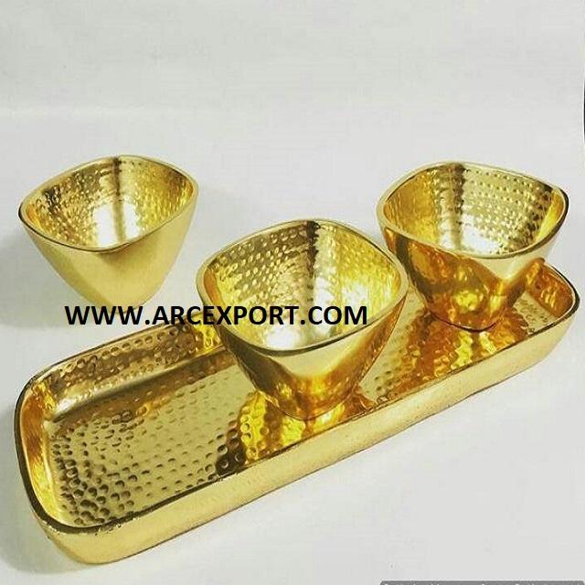 Gold Color With Golden Metal Unique New Stylish Large Fancy Modern Standard Decoration 3 Serving Bowls Set in Affordable Price