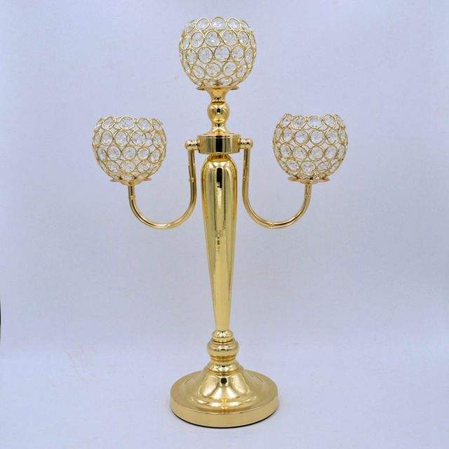 Gold Crystal Ball Centerpiece Candelabra Shinning Polished Metal Luxury Fancy Wedding Floor Standing Candelabra for Table Decor
