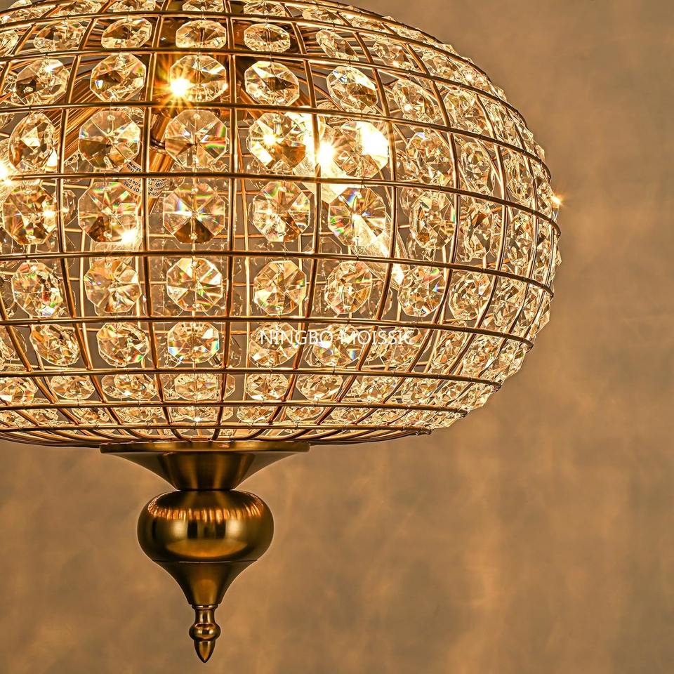 Gold Crystal Chandelier 16.5" Modern 4-Light Round Crystal Pendant Light Antique Globe Foyer Chandelier for Dining Room Living