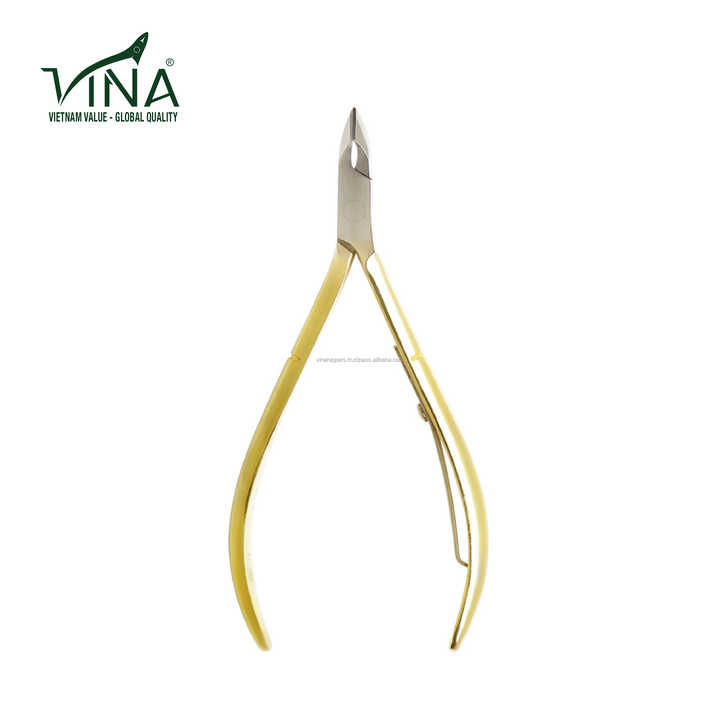 Gold Cuticle Nipper Vina VNC-20 Plated Steel Nail Clipper with Sharp Blade for Toes and Fingers Nail Cutter