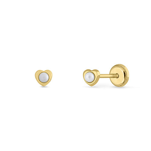 Gold Fine Stud Earrings with Mother of Pearl Heart Design