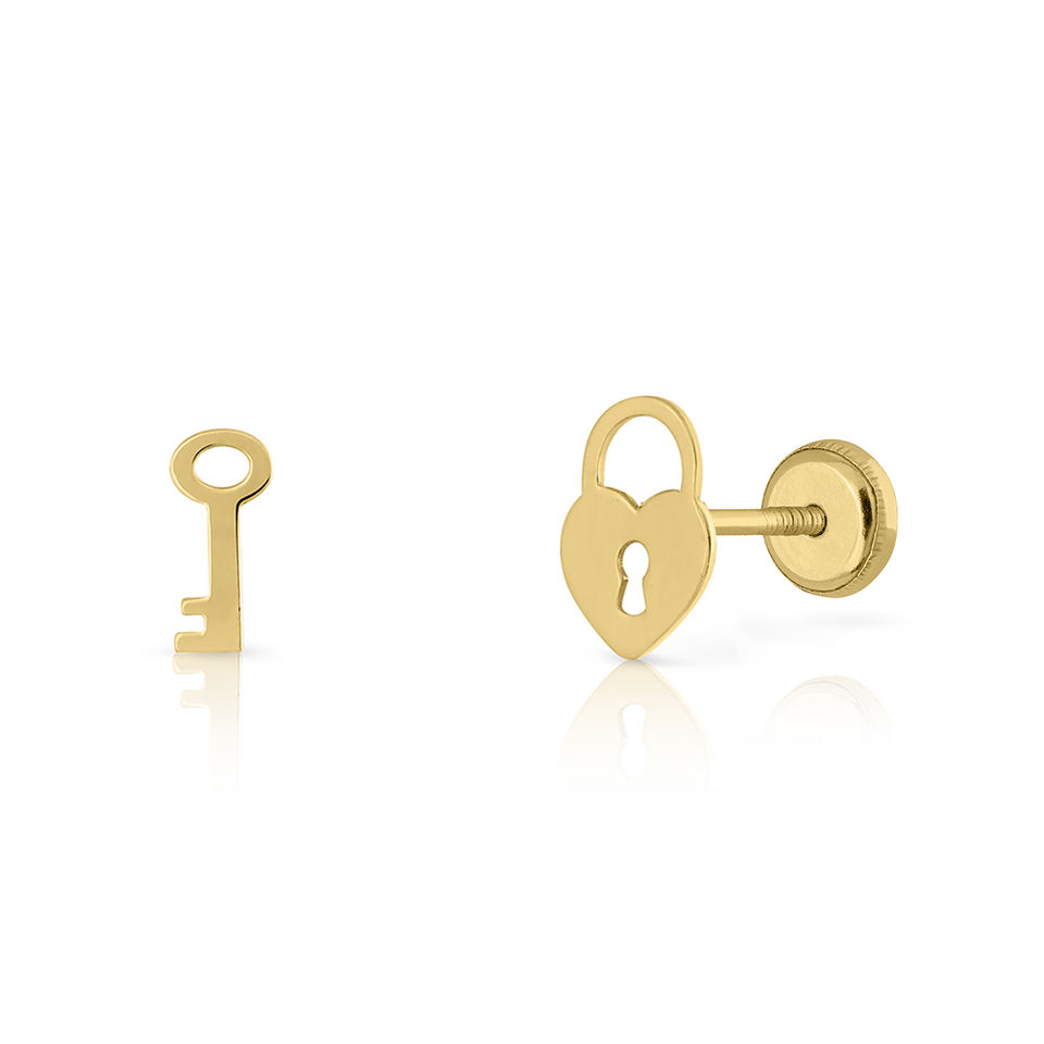 Gold Earrings Key & Padlock