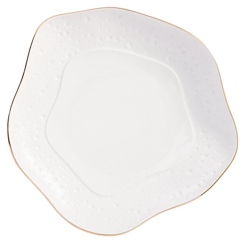 Gold-Edged Irregular-Shaped Ceramic Dinner Plate High-End Commercial Artistic Salad Plate with Modern Design for Home or Party