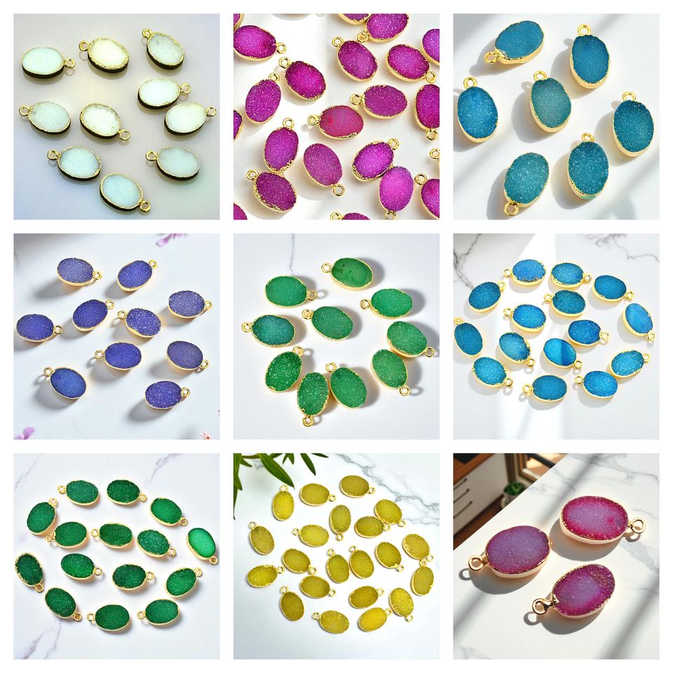 Gold Electroplated Lemon Druzy Connector 10x12mm Oval Shape Druzy Gemstone Connector Pendant