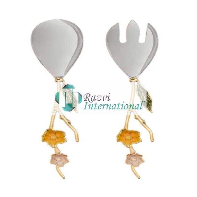 Gold Ellebore Salad Servers Set of 2 Restaurant Gold Color Metal Salad Server With Flower Design Handle Cutlery Flat Ware Set