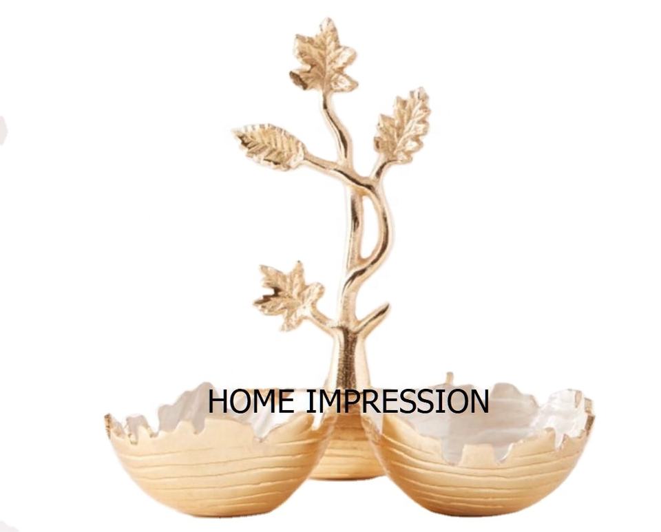 Gold & Enamel Finished 3 Saucer Space Curve Edges Designer New Modern Fancy Serving Bowls Metal Handcrafted Indian Heavy Bowls
