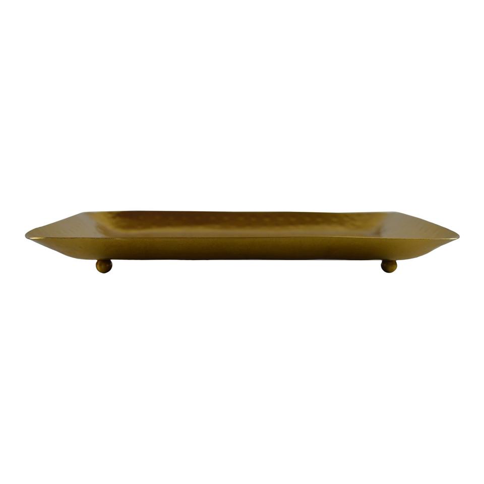 Gold Finish Rectangular Serving Tray Natural Wooden Design Multiple Metal Handle Silver Finishing Design Brown Wood Tray