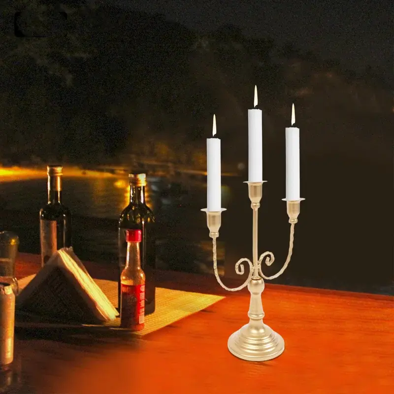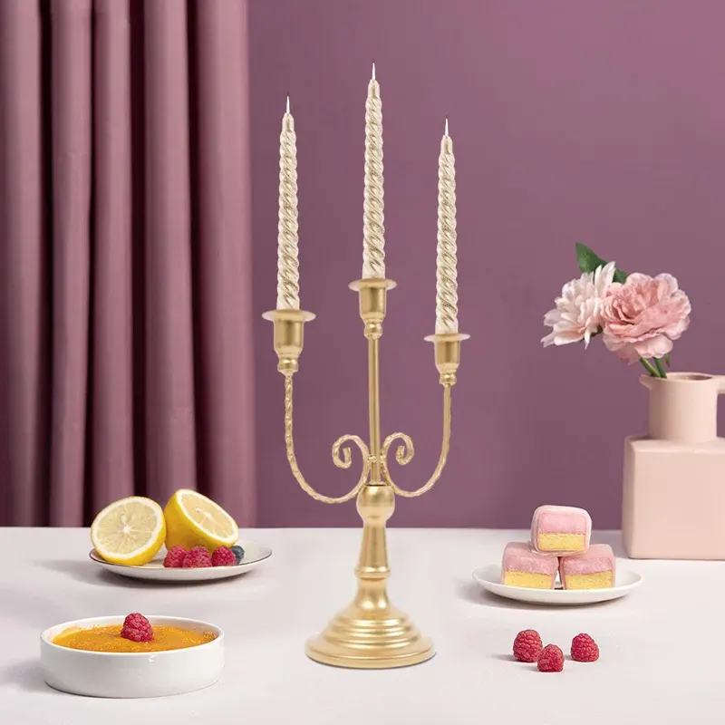 Gold Finish Tapered Natural Wood Candle Stand Christmas Religious Activities Handmade Frosted Finished Interior Decor Banquet