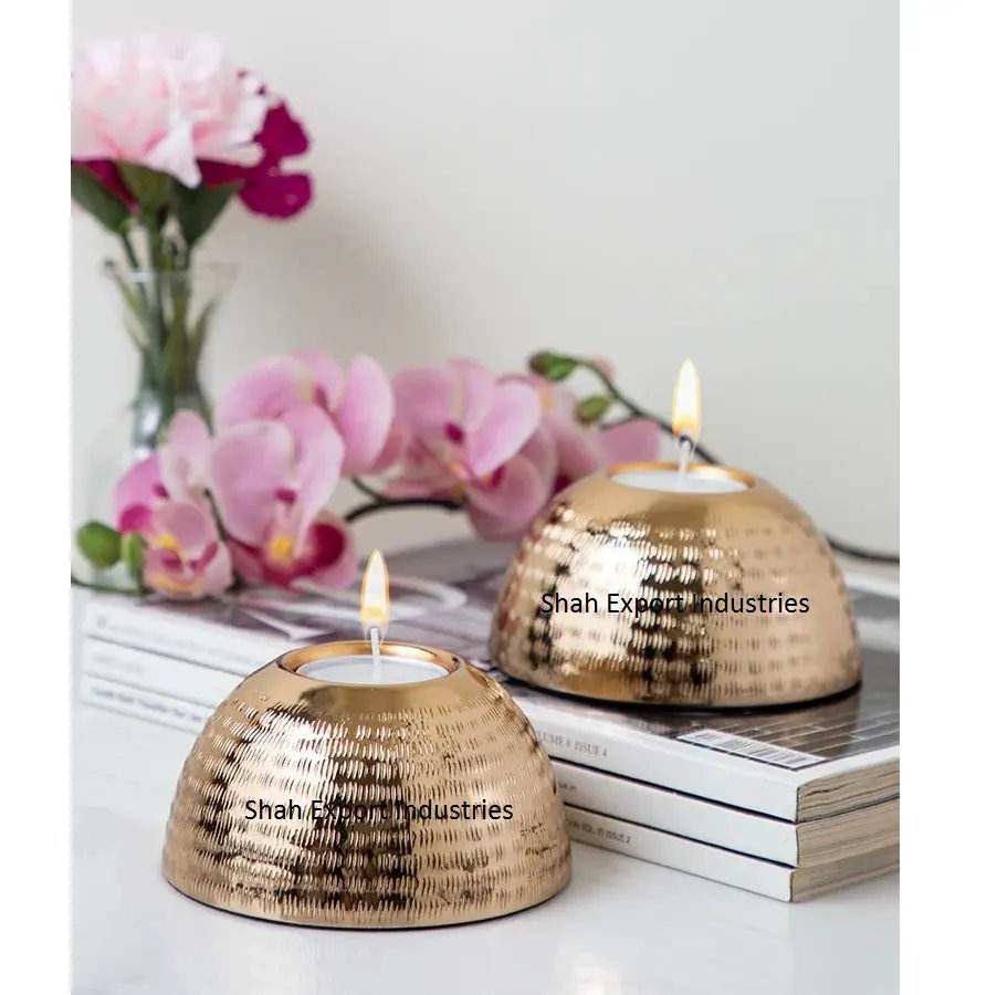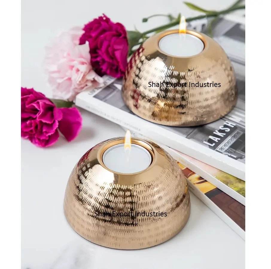 Gold Finished Brass Round Tea Light Candle Holder for Home Wedding Party Table Lighting Decor Tealight Holders