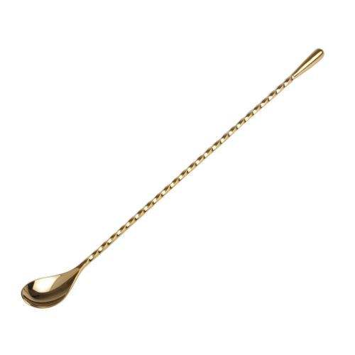 Gold Finished Japanese Bar Spoon - Long Handle Cocktail Stirrer with Forked End for Mixing in Bars
