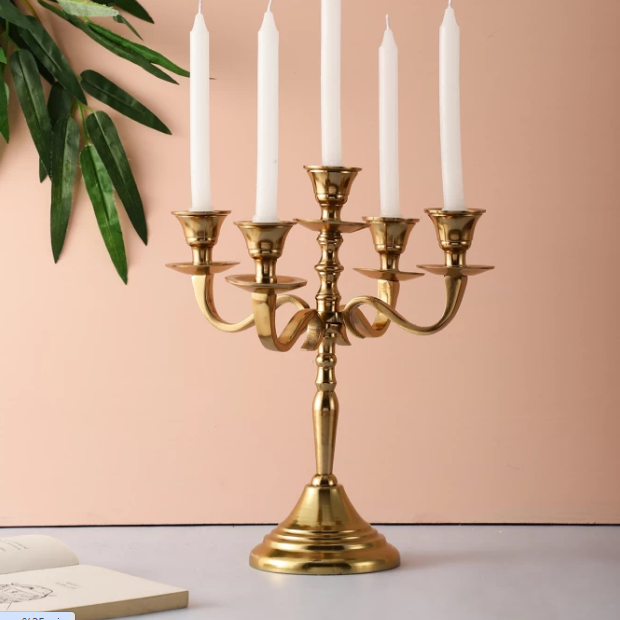 Gold Finished Metal Candelabra for Table Top Home Decoration Metal Candle Holder at Affordable Price