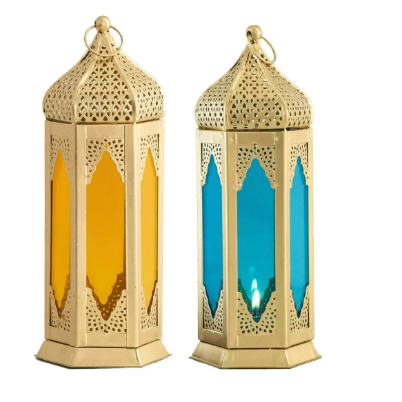 Gold Finished Metal Candle Lantern Unique Stylish Metal Lantern Candle Light Holder Lamp Jar Moroccan Design