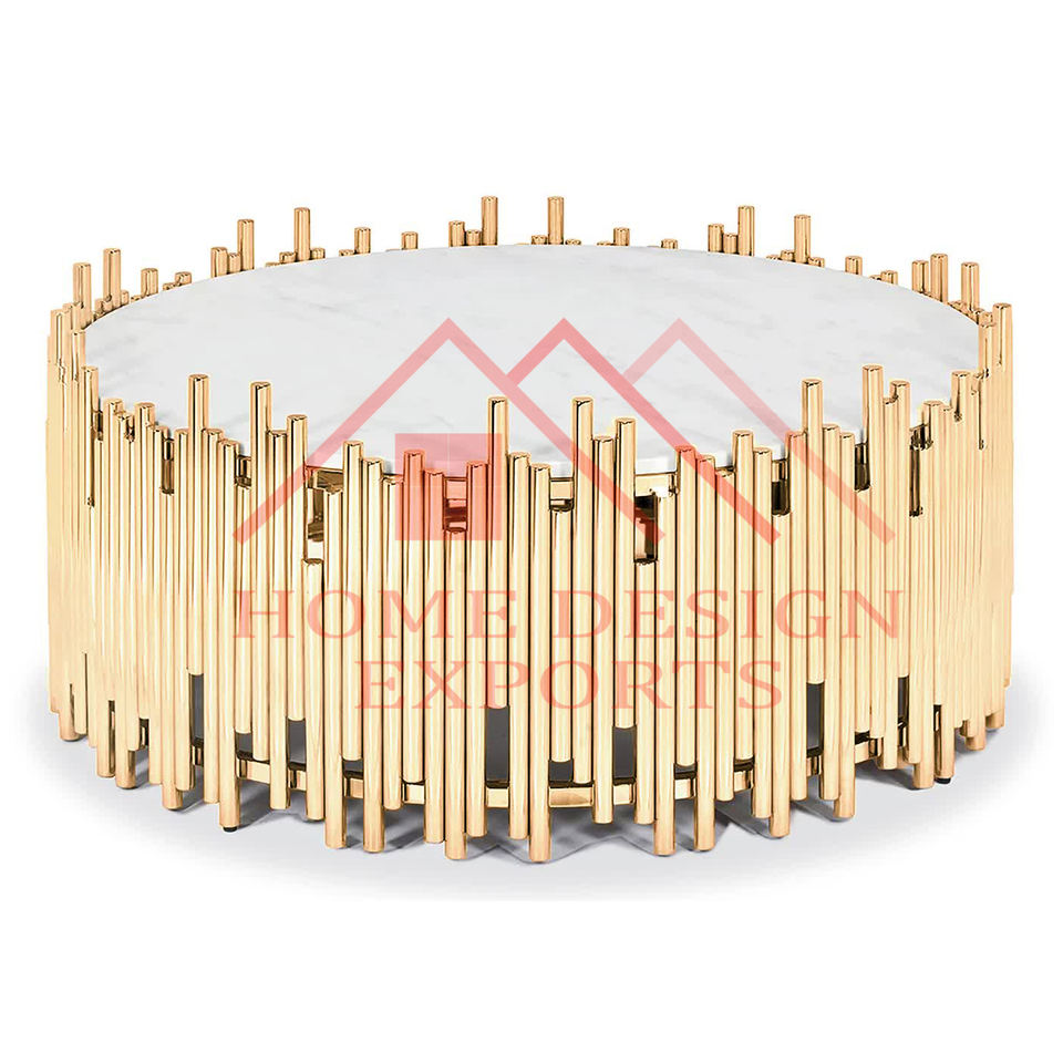 Gold Finished Metal Coffee Table Furniture With Glass Top Home hotel Decor Furniture At Wholesale Price