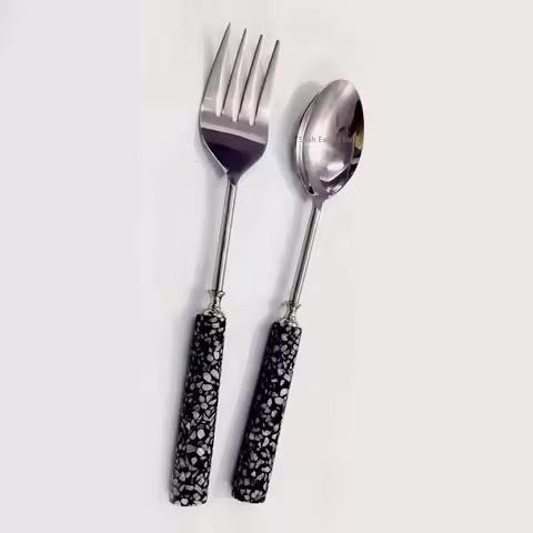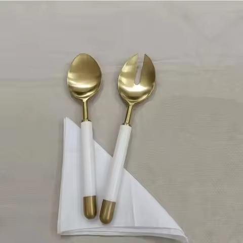 Gold Finished Metal Salad Server With Acacia Wooden Handle for Home & Wedding Dinner Table Decor Salad Server Sets