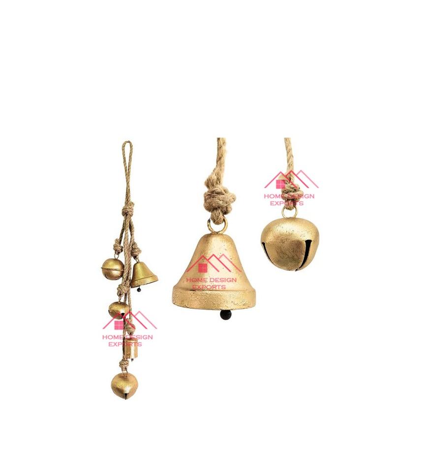 Gold Finished Set 3 Metal Jingle Bells Indoor Outdoor Christmas Decor Ornaments Elegant Design for Festive Holiday Decorations