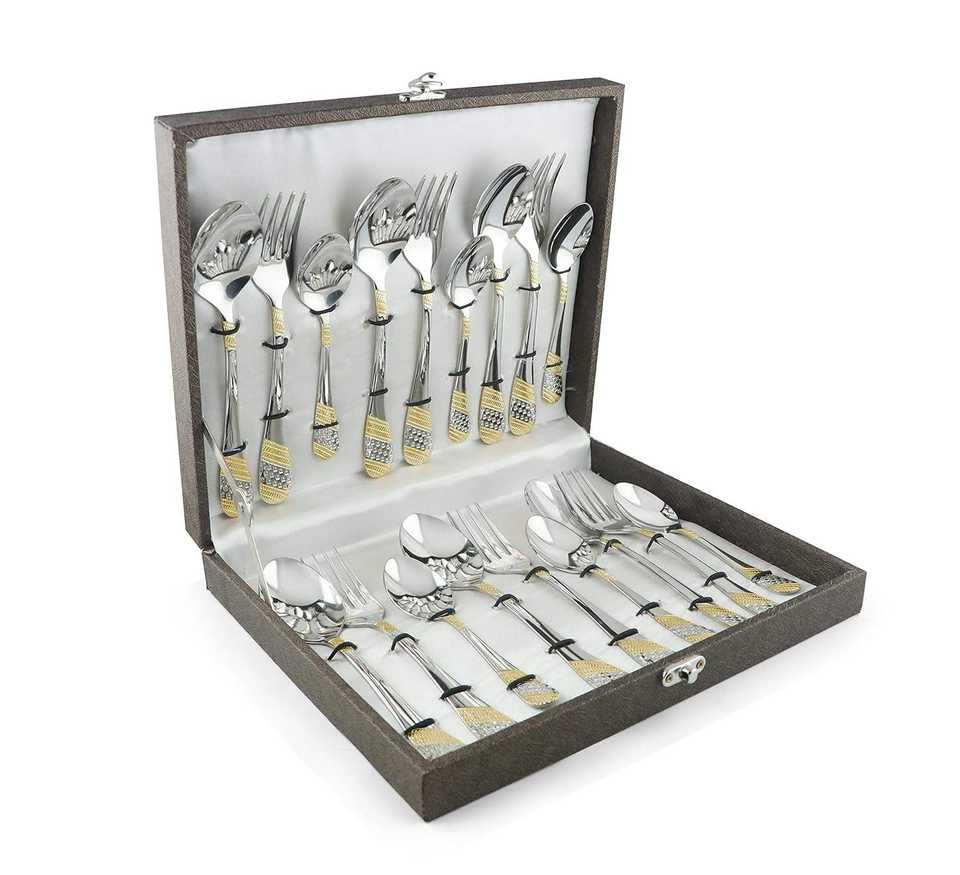 Gold Finished Stainless Steel 24pcs Cutlery Set Tableware Spoon Fork Knife Set with Case Durable Flatware for Home Dining