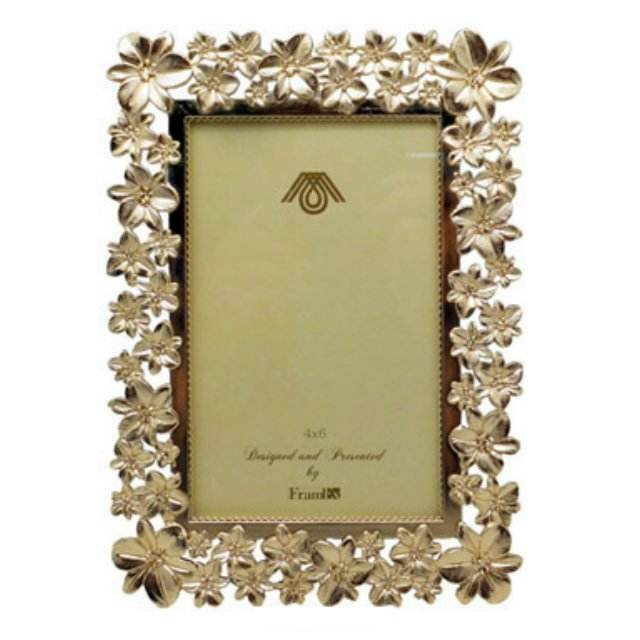 Gold Floral Decorative Metal Photo Frame 4\"x6\" Size
