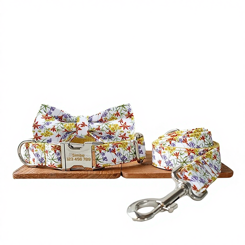 Gold Flower Cotton/Nylon Mix Fabric Custom Cat & Dog Collar in Pink