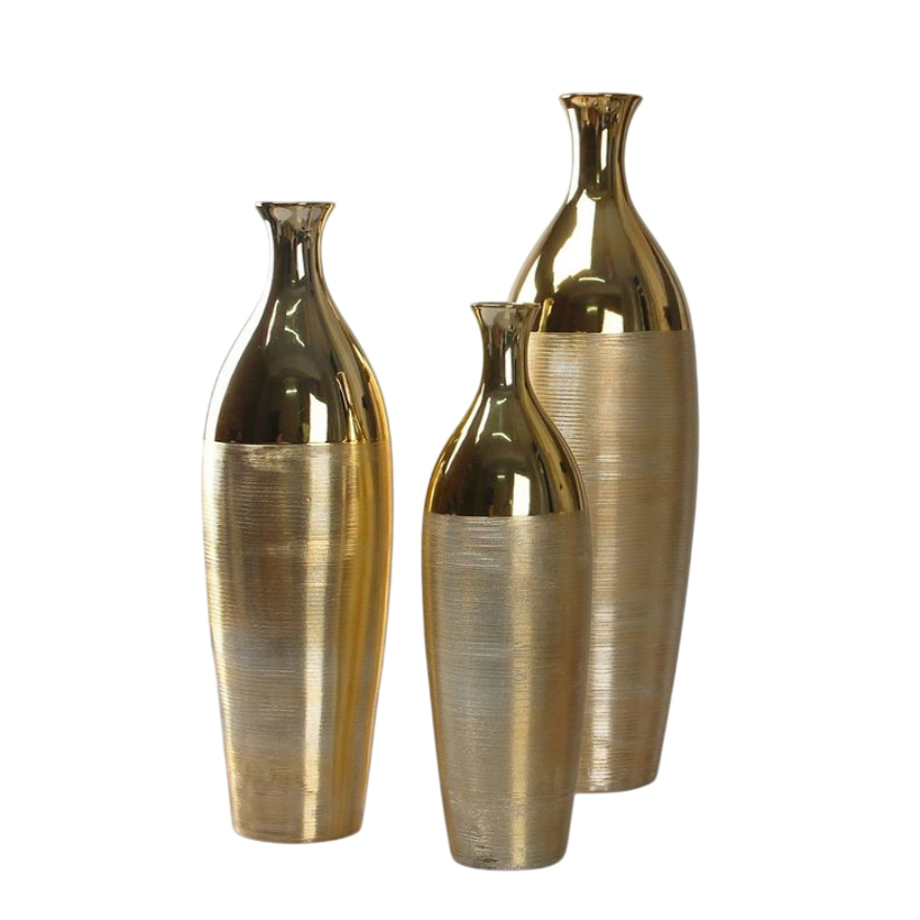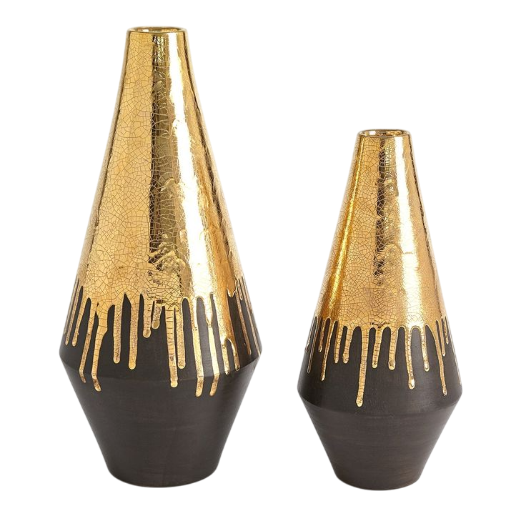 Gold Flower Vases Set of 2 Lead Metal Wedding Table Centerpieces Event Party Vases Available in Custom Shape and Size