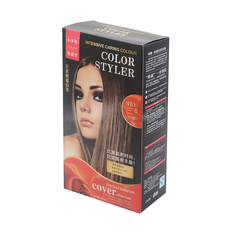 Gold Foil Embossed Cosmetic Hair Dye Packaging Diverse Array Paperboard Containers Vanishing Matt Lamination Printing Handling