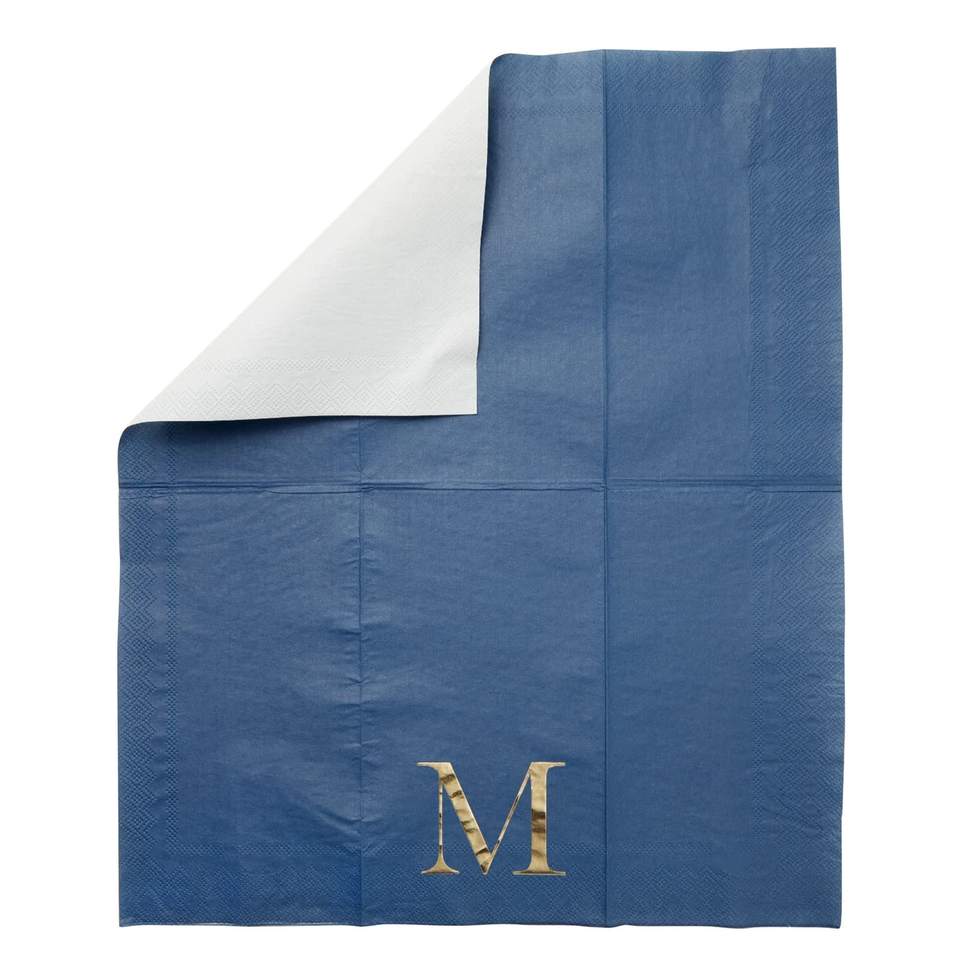 Gold Foil Initial Letter M Blue Monogram Paper Napkins 3-Ply Style Bag Party Supplies for Wedding Birthday Baby Shower