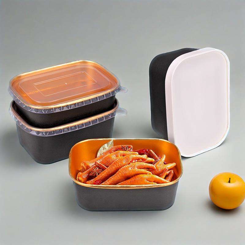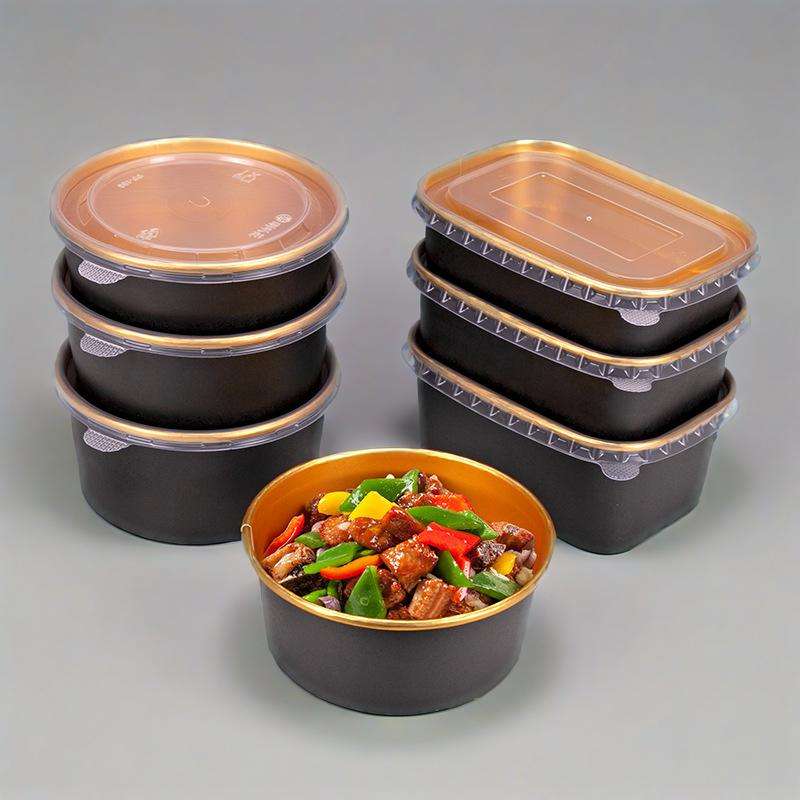 Gold Foil Silver Foil Paper Salad Bowl Paper Disposable Soup Cups With Lid Takeout Food Lunch Box Noodles Paper Containers
