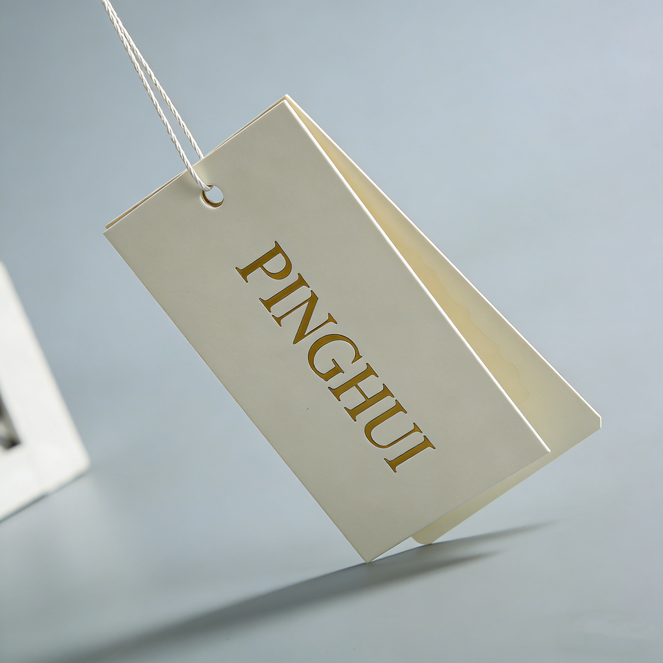 Gold Foil Stamping Folded Paper Hang Tag Custom Apparel