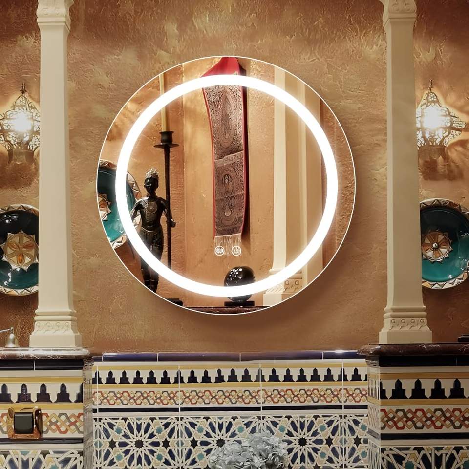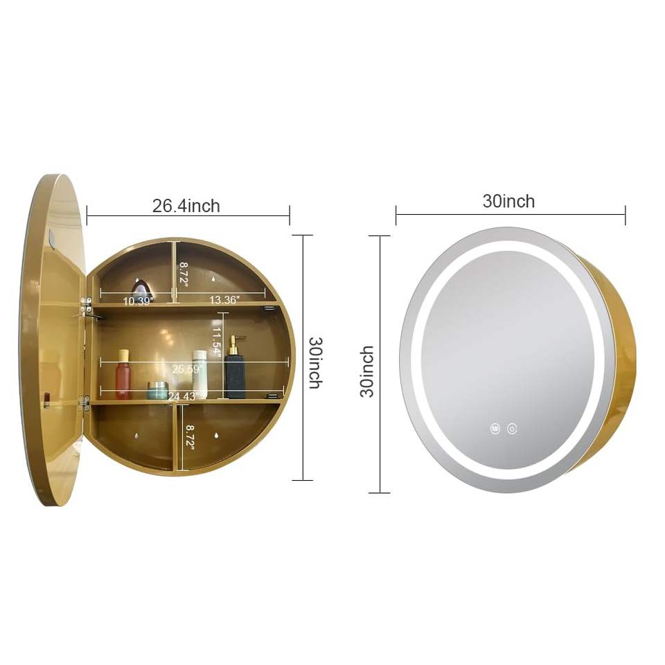 Gold Framed Round LED Bathroom Medicine Cabinet, Modern Wall Mounted Illuminated Mirror Cabinet with Storage for Bathroom