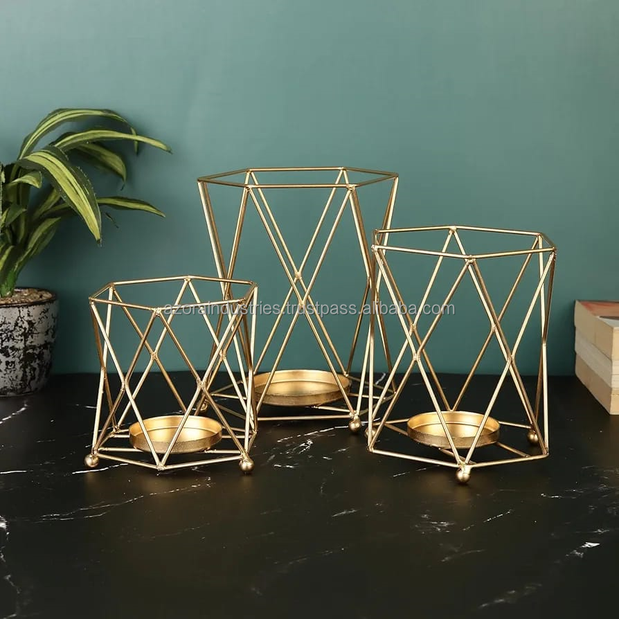 Gold Geometric Tealight Candle Holders Wedding Reception Decor for Table Centerpiece Metal Iron Wire Tea Light Oil burner Aroma