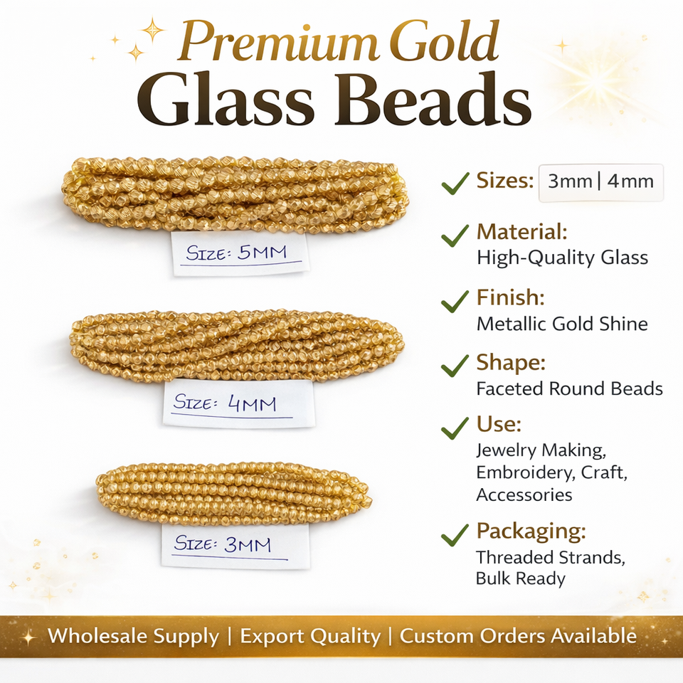 Gold Glass Beads 3mm 4mm 5mm Metallic Finish Round Faceted Beads for Jewelry Making Craft Box Wholesale Bulk