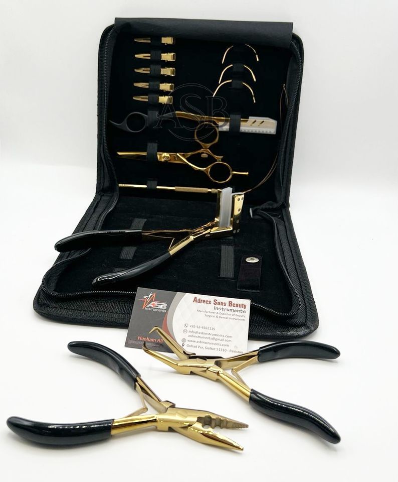 Gold Hair Extension Kit Stainless Steel Tools Including Micro Link Silicon Beads Tape Pliers Loop Extension Removal Pliers
