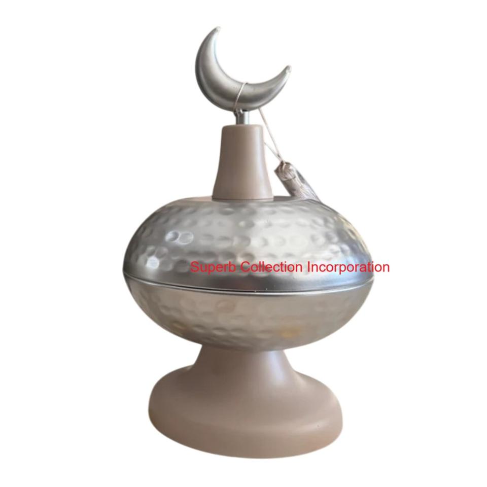 Gold Hammered Brass Dates Bowl Set With Crescent Moon Lid For Ramadan And Eid Mubarak Metal Dry Fruit Serving Dish For Home