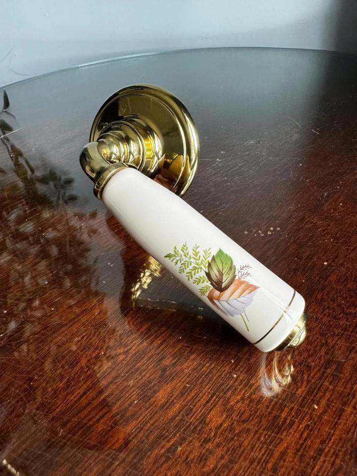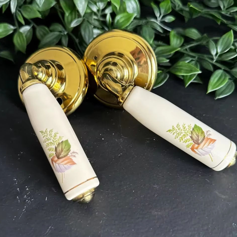 Gold Handle With White Flower Print Elegant Design For Cabinets Drawers Interior Door Home Decor And Designer Furniture Hardware