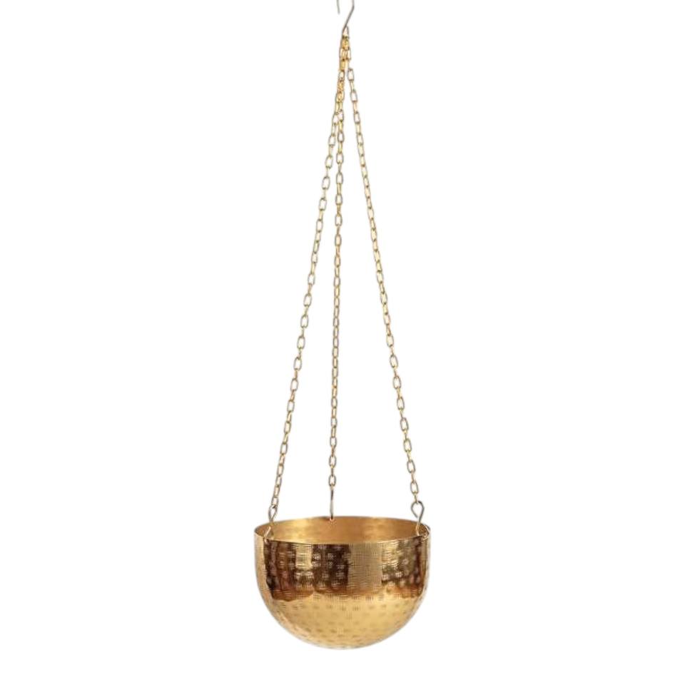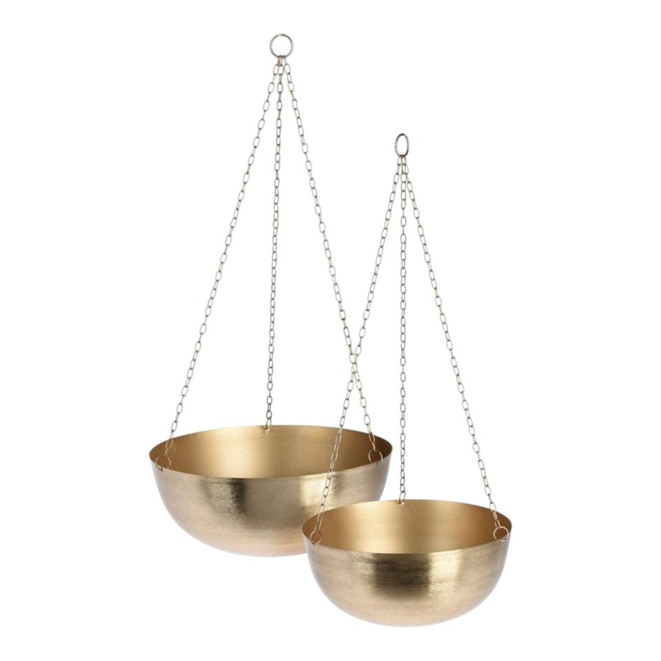 Gold Hanging Bowl Planter Set with Chain Suspension for Luxury Indoor Plant Styling and Modern Home Decor