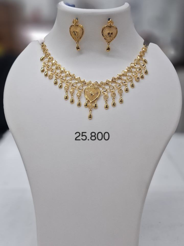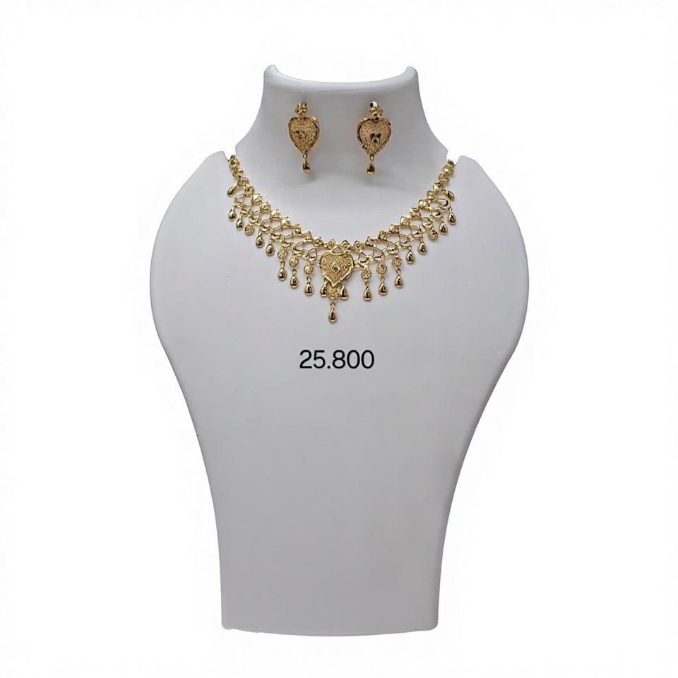 Gold Heart Lattice Necklace Set with Dangling Drops and Matching Earrings for Womens Festive Jewelry