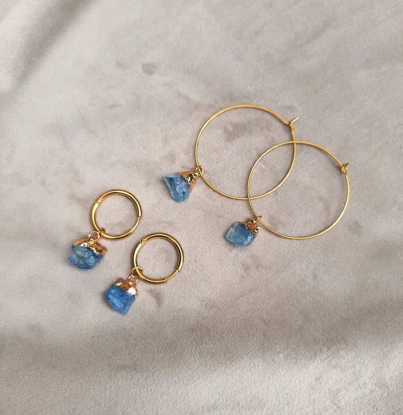 Gold Huggie Hoop Earrings White Jade Dainty Drop Boho Style Raw Crystal Natural Gemstone Heat Treated Birthstone Gift For Her