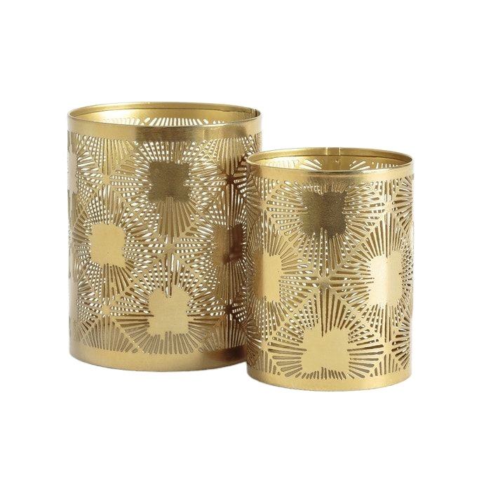Gold Intricate Laser Cut Design Candle Lantern Set Stylish Home Decor Lighting Ambience Enhancement Easter Occasion Iron