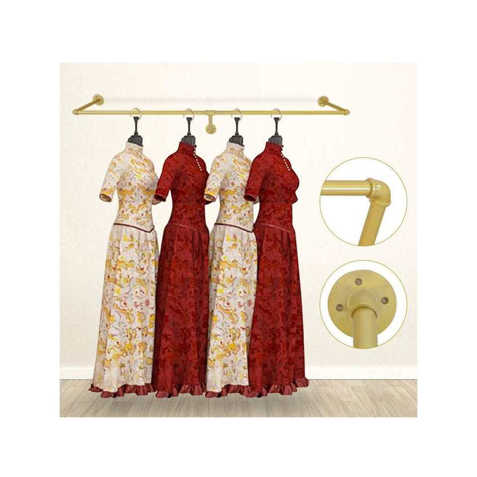 Gold Iron Industrial Pipe Wall Mounted Clothing Rack Wedding Clothes Rack with Polish Surface Treatment Hanging Garment Rack