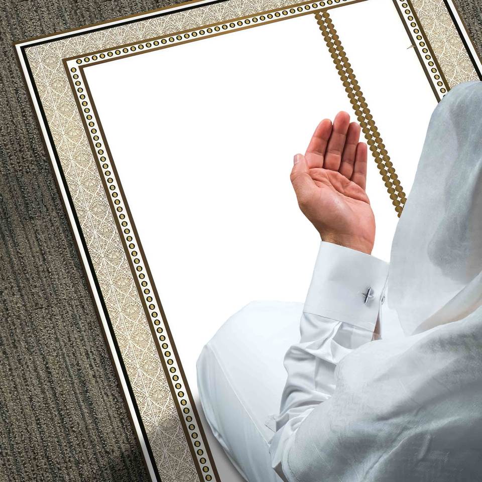 Gold Islamic Prayer Rug: Muslim Home Decor, Personalized Rug,Nonwoven Thin Rug