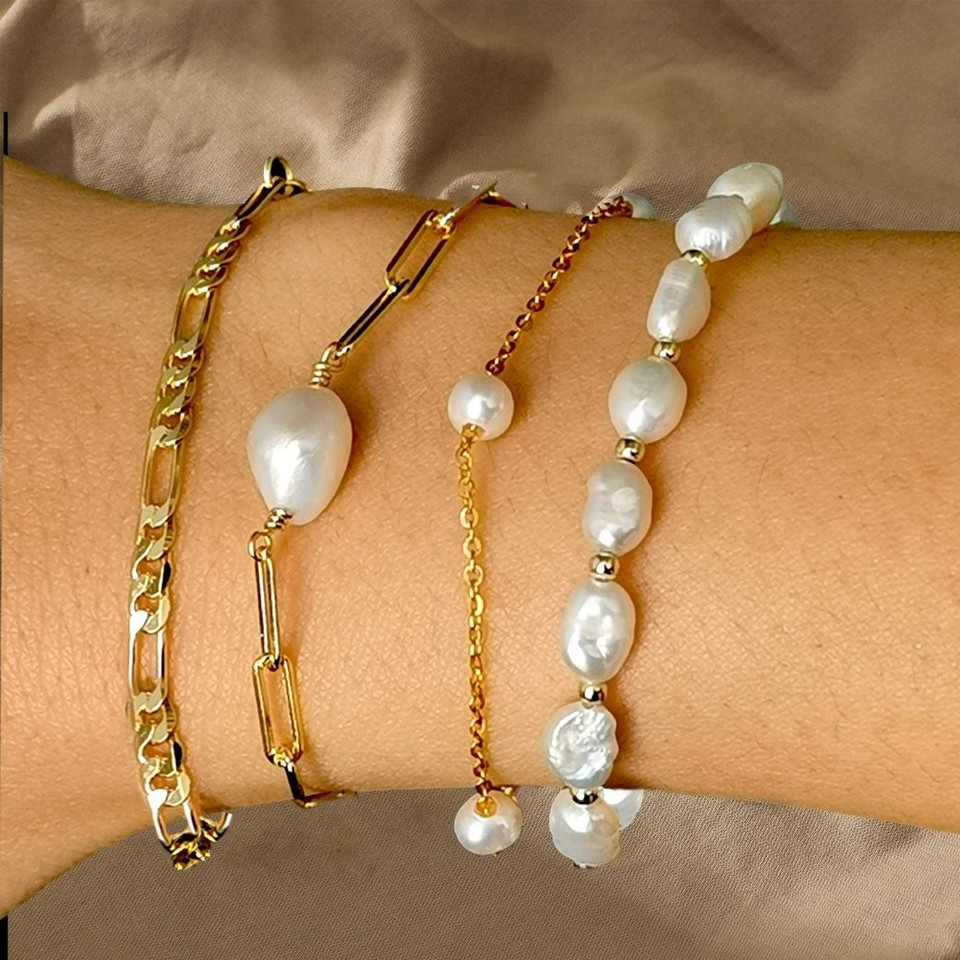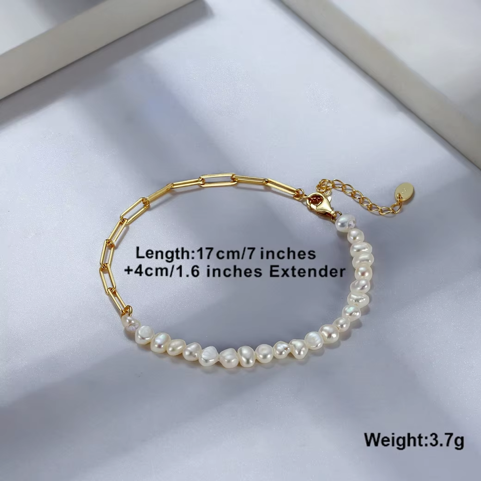 Gold Jewelry 925 Sterling Silver Freshwater Pearls Bracelet Chain Gold Plated Joyas De Plata Pearl Bracelets