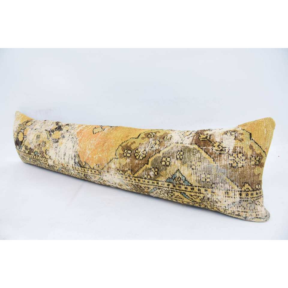 Gold Kantha Patchwork Wool Pillow 12x48 Inch Rustic Design Embroidered Floral Vintage Woven Decorative Cushion for Car Floor